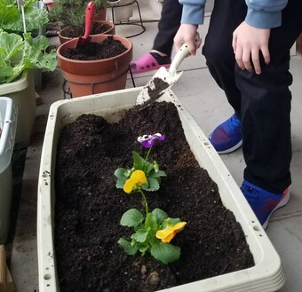 なないろ菜園の野菜やお花は、季節で植え替え、見えるところに配置。子どもたちと一緒に成長を楽しんでいます。収穫した野菜は調理しておやつにいただきます。
