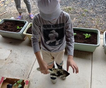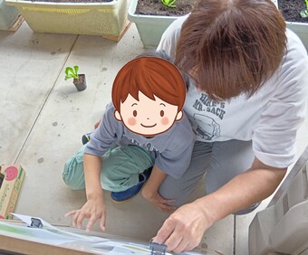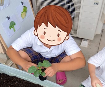 なないろの空では、季節ごとに花や野菜の苗植えをしています。今回はキャベツ、白菜、レタス、ブロッコリーの苗植えを行いました。どの野菜を植えるか野菜の写真を見ながら自分で決めます。野菜の名前や色や香り、その野菜を使った料理の話をしながら活動を進めました。「ブロッコリーが一番おいしい」「白菜といえば鍋だよね」「大根はおでんで食べるのが一番好き」など、色々な話が出ていましたよ。野菜の名前当てクイズではキャベツとレタスの違いが難しいようでした。自分たちで植えて成長を観察することで、野菜への興味や食べ物を大切にする気持ちに繋がっていくとよいです。