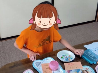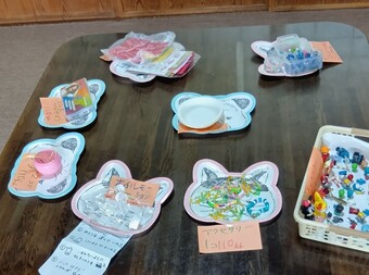 今日はお金の学習をしました。なないろの空にあるおもちゃに値段をつけ、自分が遊びたいものを選んで予算内で買い物をする活動です。早く登所した子は看板作りや値段つけのお手伝いをしてくれましたよ。お金の計算がまだ難しい子はスタッフと一緒に硬貨を確認しながら買い物をしました。オイルモーションの材料を買った子たちは、自分でオイルモーションを作って制作も楽しんでいました。予算内で計算しながら、どのおもちゃを買うか迷って悩んだ末に決める子が多かったです。今後も活動や遊びの中で、物の価値を判断する力、それに加えて自己選択・自己決定をする機会を設けていこうと思います。